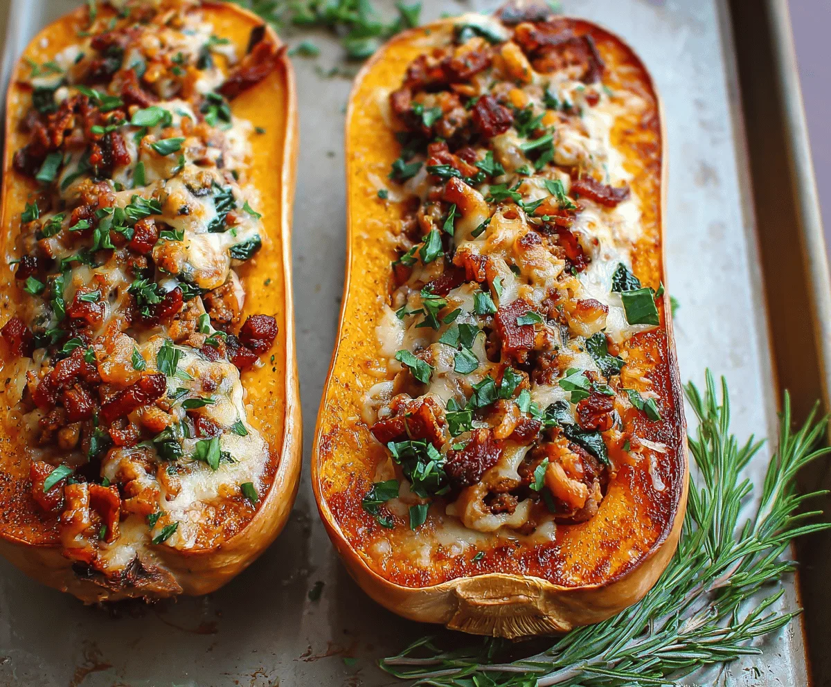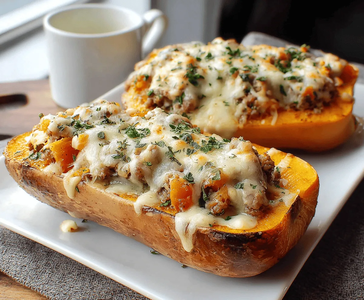 Cheesy Italian Stuffed Butternut Squash is a delicious twist on a comforting classic. You get the natural sweetness of roasted butternut squash filled with a blend of melty cheese, Italian herbs, and maybe some savory sausage or veggies. The combination of creamy, cheesy filling against the tender squash makes every bite so satisfying.