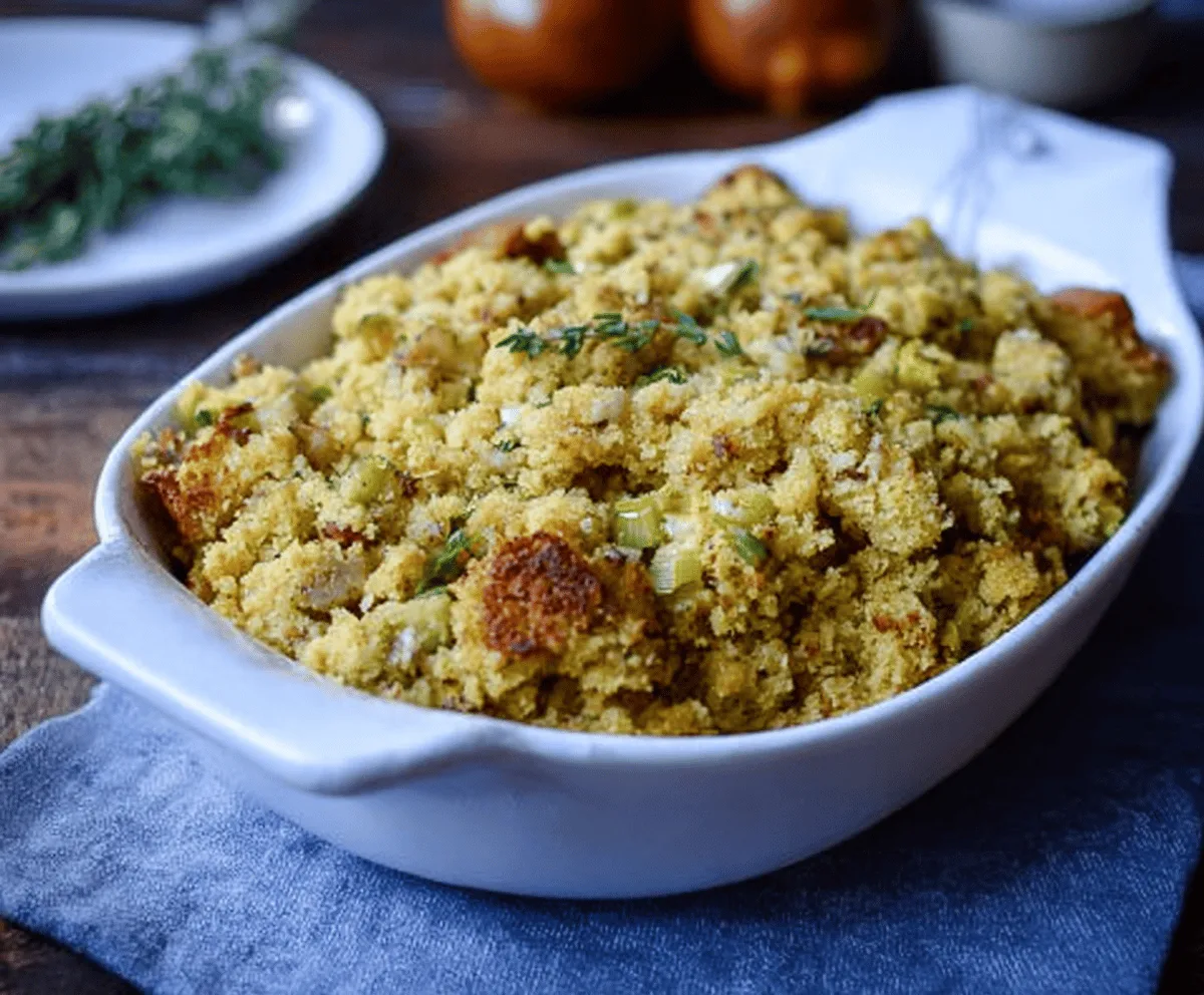 Bread Cubes: Adding white or country-style bread gives a nice texture contrast. You can skip this if you want a pure cornbread flavor or use gluten-free bread for allergies.