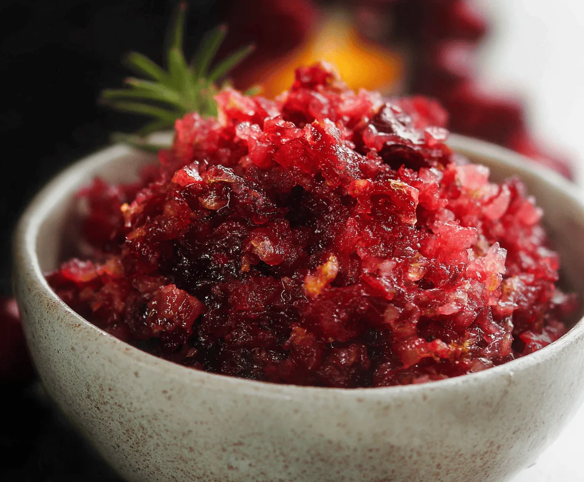I love making cranberry relish because it’s so quick and feels festive without much fuss. I usually use a food processor to chop everything up, which gives it a lovely, slightly chunky texture that’s just perfect. Sometimes I toss in a bit of chopped apple or some nuts for a nice crunch. It’s one of those dishes that’s easy to tweak based on what you have on hand or how tart you want it.