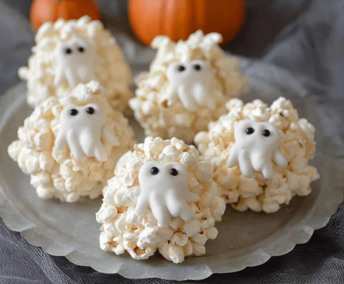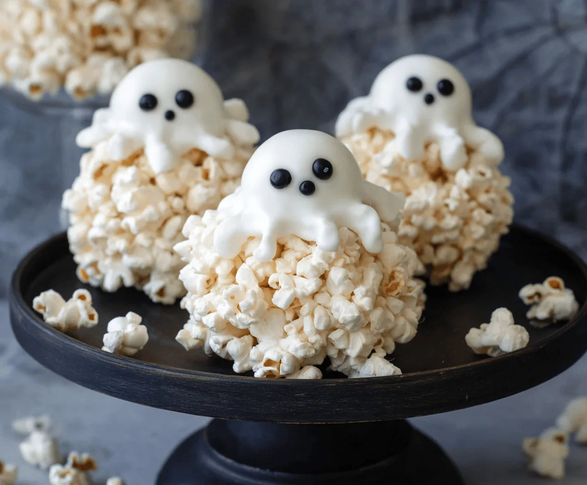 I love making these because they’re a great project to do with kids or friends. It’s so simple: melt the marshmallows, mix with popcorn, shape into balls, and then decorate with faces or any fun ghostly details you like. Plus, you can customize them however you want—add a little white chocolate drizzle or use candy eyes for extra cuteness. Making these always puts me in a cheerful mood!
