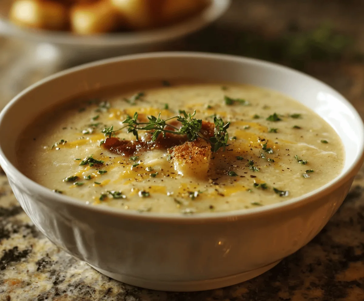 I love making this soup when I want something that’s simple but really satisfying. The garlic and herbs bring a fresh twist that keeps it from being just your everyday potato soup. I usually sauté the garlic first to get that rich flavor going, then stir in the cheese so it melts perfectly into the creamy broth.