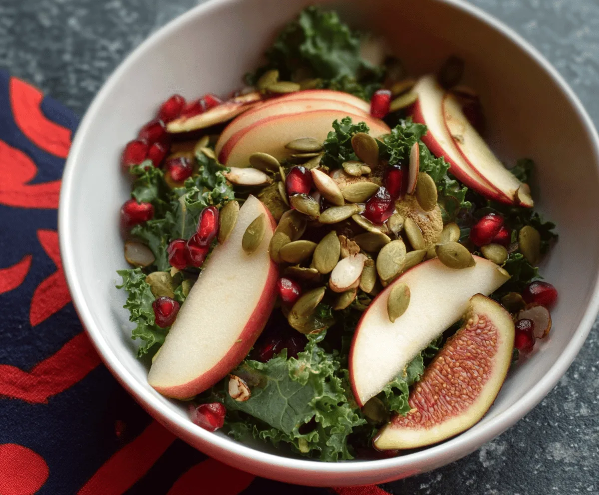 You can prepare the dressing and toast the pumpkin seeds in advance, but it’s best to assemble the salad right before serving to keep the kale crisp and the fruit fresh.