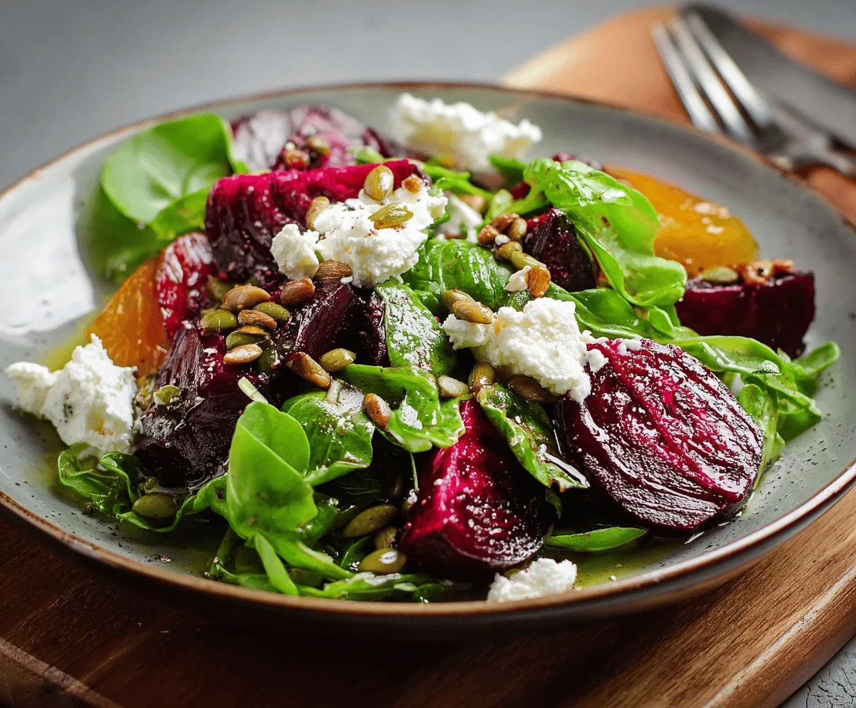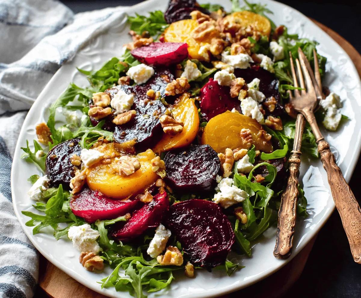 I love making this salad when I want something simple but a little special. Roasting the beets brings out their natural sweetness, and the goat cheese adds such a lovely creamy contrast that feels gentle and bright. I usually toss it with a simple vinaigrette to keep things fresh and let the flavors really shine.