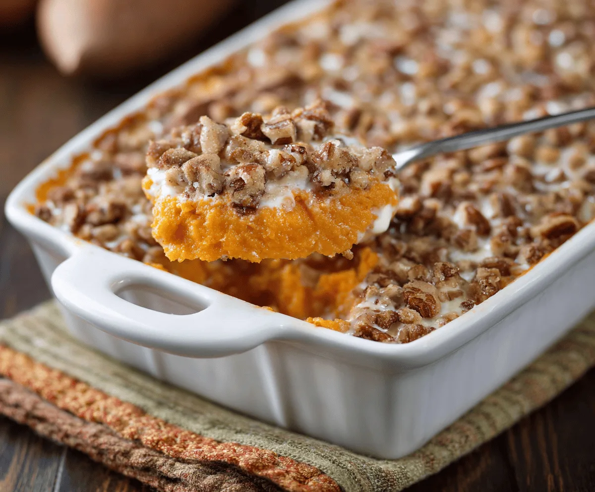 Sweet Potato Casserole is a cozy, comforting side dish that’s perfect for any gathering. It’s creamy mashed sweet potatoes topped with a crunchy layer of pecans and brown sugar, giving you a wonderful mix of soft and crispy textures. The natural sweetness of the potatoes shines through, making every bite into a little bit of comfort.