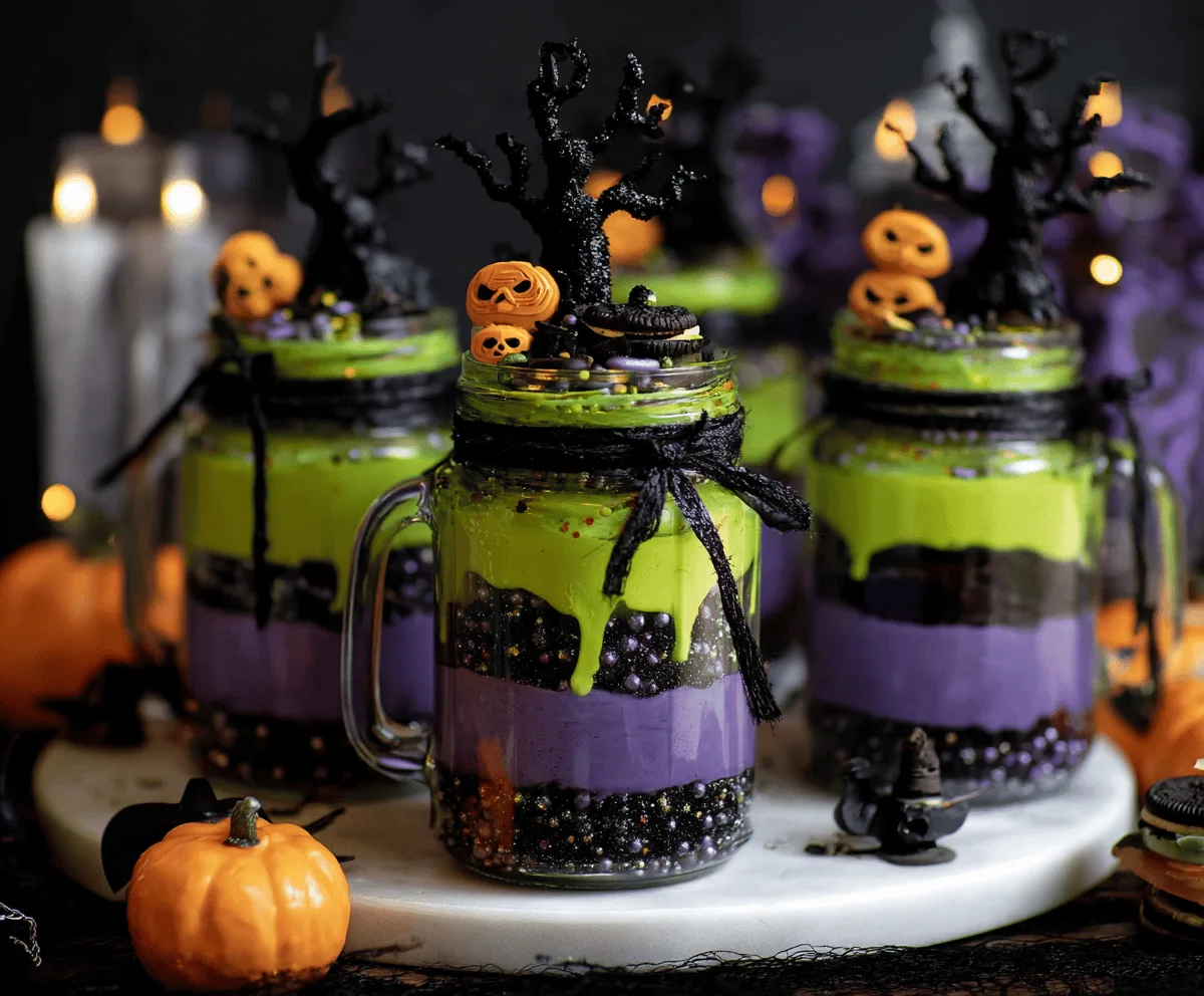 I love making these because they’re easy to customize—add your kids’ favorite cake flavors, sprinkle in some candy eyes, or top with whipped cream and edible glitter for a magical finish. Plus, serving them in jars makes cleanup simple and adds a cute touch to your Halloween party table.